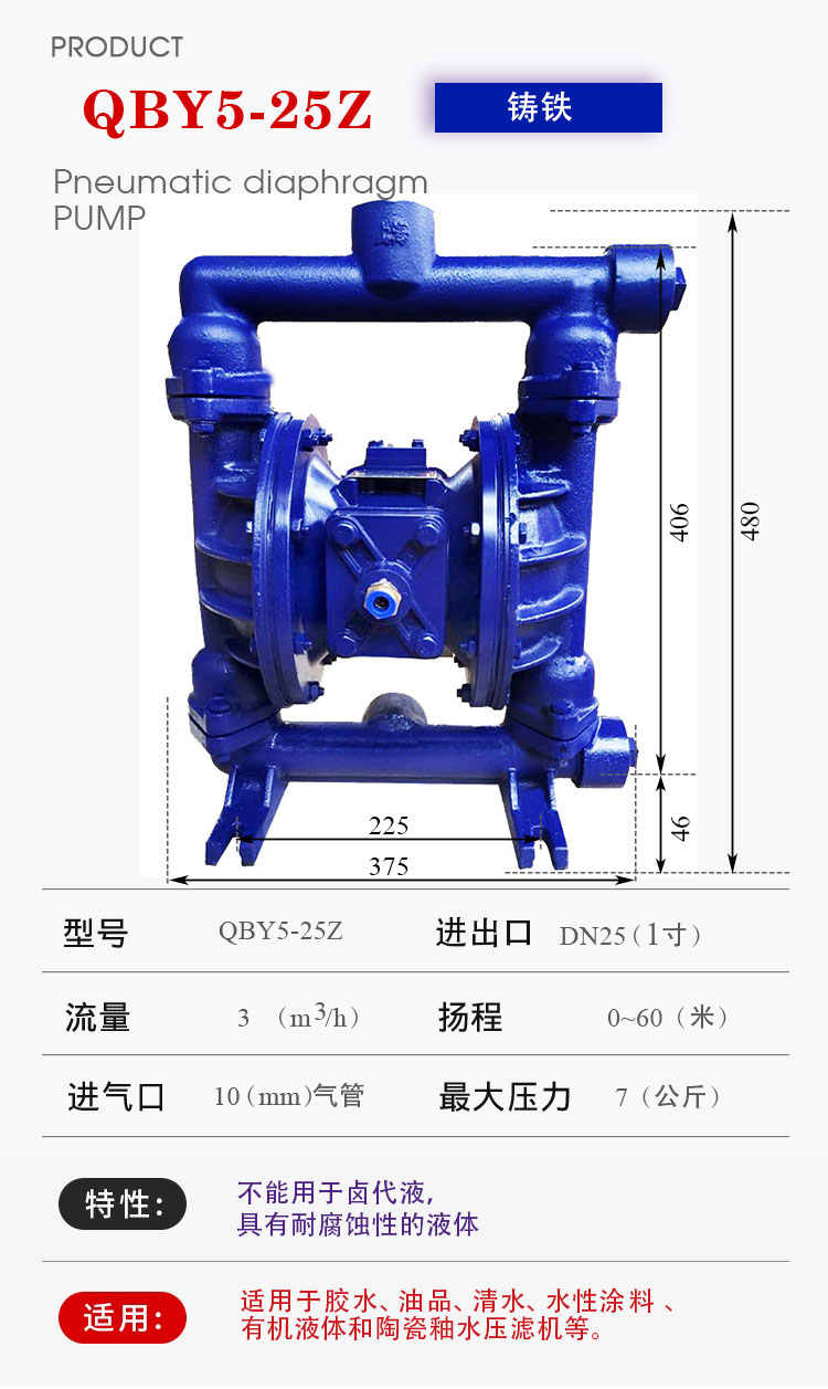 QBY5-25Z型鑄鐵氣動(dòng)隔膜泵