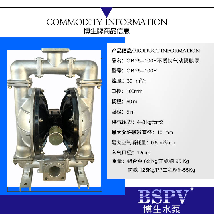 QBY5-100P型不銹鋼氣動(dòng)隔膜泵